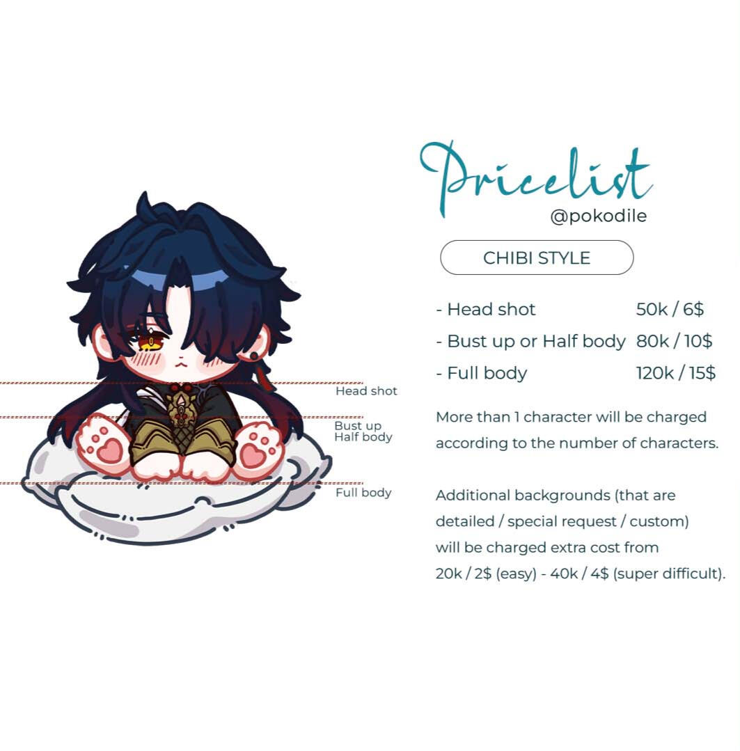 • Please read all my commision info (TOS, Do & Don't, Pricelist) first before placing commmision.• When ready to commision, you can contact me through my Twitter DM @pokodile• By commissioning me, you automatically accept my Terms of Service and are obligated to follow them.